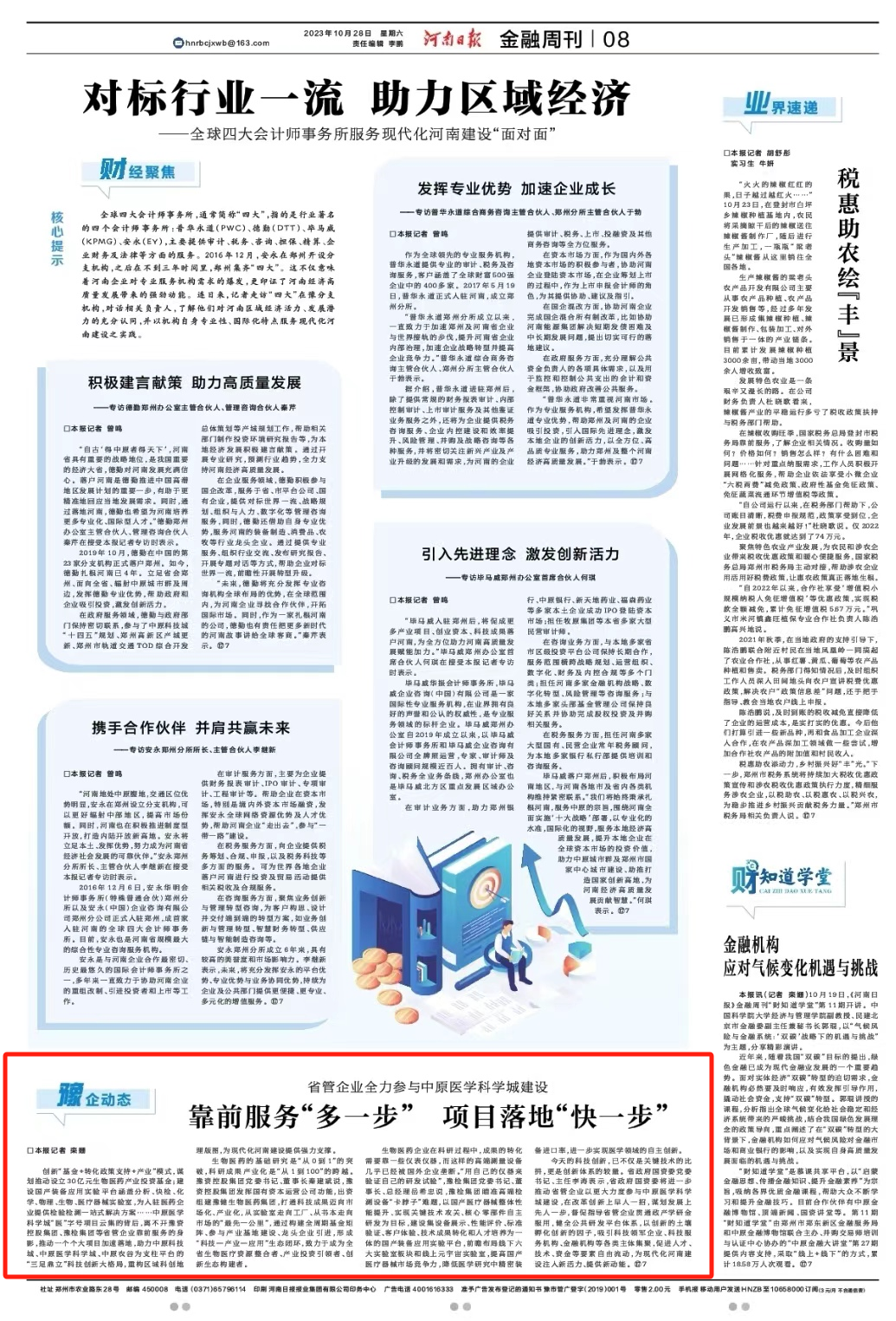 創新“基金+轉化政策支持+產業”模式,謀劃推動設立30億元生物醫藥產業投資基金;建設國產裝備應用實驗平臺涵蓋分析、快檢、化學、物理、生物、醫療器械實驗室,為入駐醫藥企業提供檢驗檢測一站式解決方案……中原醫學科學城“醫”字號項目云集的背后,離不開豫資控股集團…...