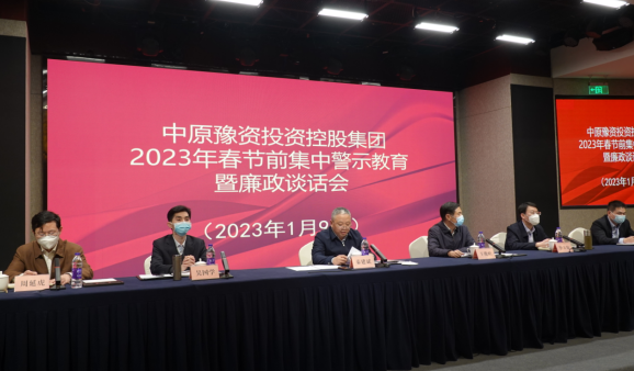 • ?2023年1月9日,豫資控股集團召開春節前集中警示教育暨廉政談話會,集團公司領導、各部門、各核心子公司共210余人參會。集團公司黨委書記、董事長秦建斌主持會議,并進行廉政談話。秦建斌指出,以講政治的高度,堅決抓好節日期間黨風廉政建設工作。集團公司各級黨組織要深…